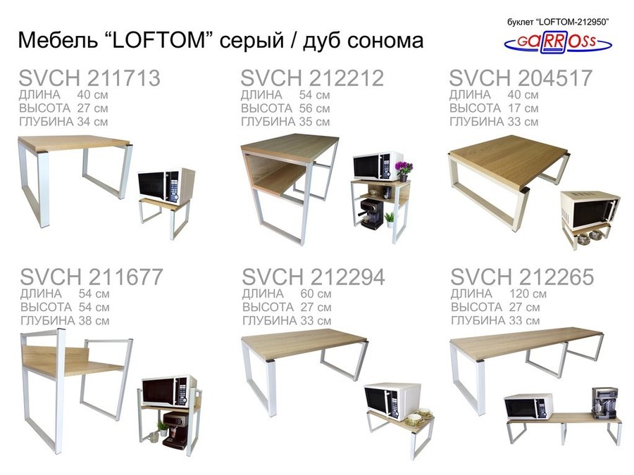 В корзину Купить в 1 клик Кронштейн для микроволновки, 54см серый "SVCH 211679" две полки 35х54см со стенками, дуб сонома