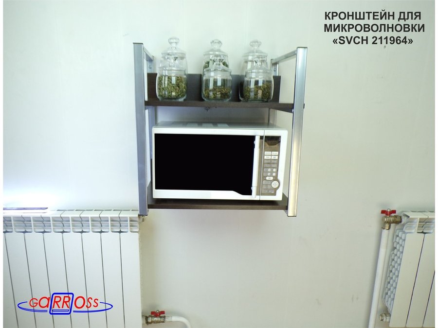 Кронштейн для микроволновки, 54см серебристый "SVCH 211964" две полки 35х54см со стенками, венге