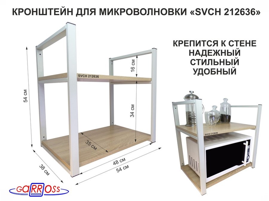 В корзину Купить в 1 клик Кронштейн для микроволновки, 54 см, серый "SVCH 212636" две полки 35х54 см, дуб