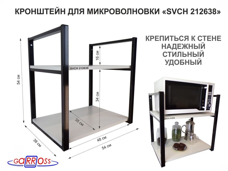 В корзину Купить в 1 клик Кронштейн для микроволновки, 54 см, черный "SVCH 212638" две полки 35х54 см, сосна