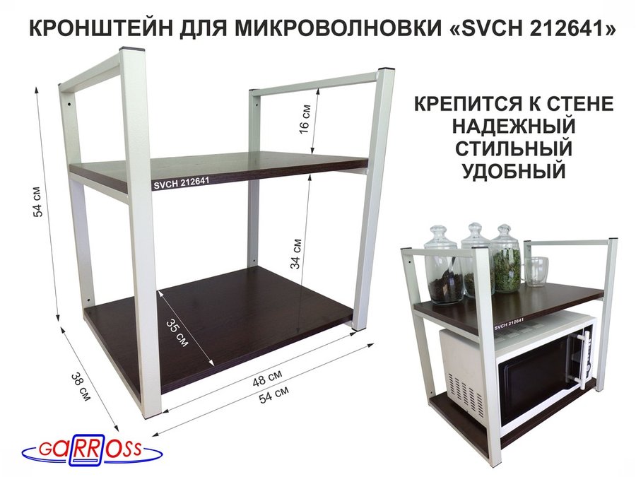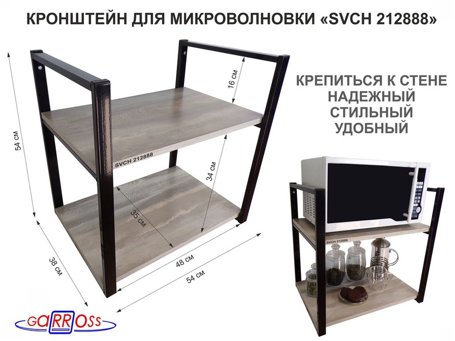 В корзину Купить в 1 клик Кронштейн для микроволновки, 54 см, серый "SVCH 212641" две полки 35х54 см, венге