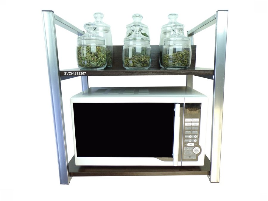 Кронштейн для микроволновки, высота, 54см серебр "SVCH 213307" две полки 35х60см со стенками, венге