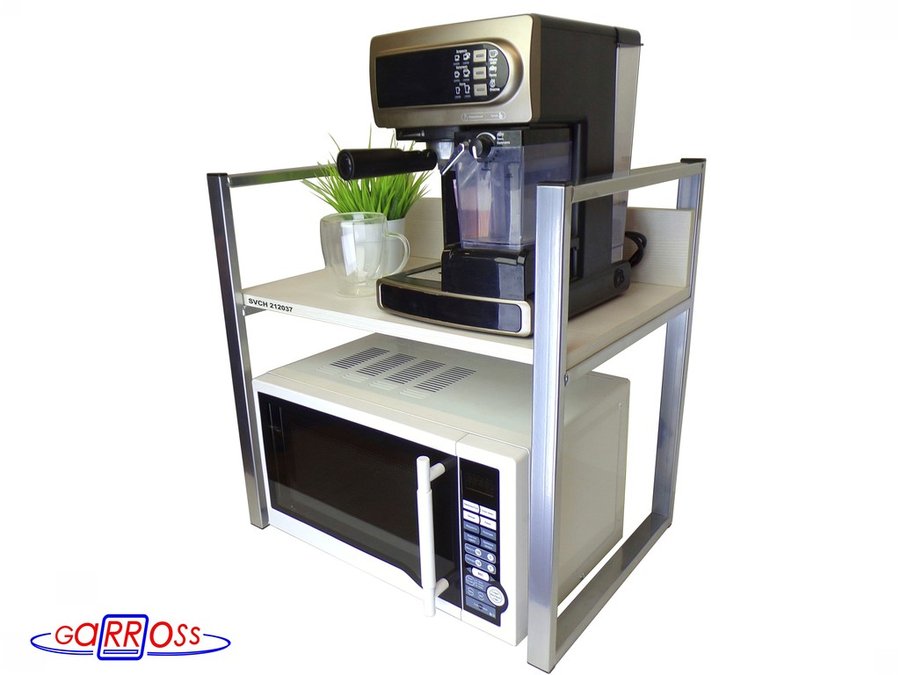 Универсальная подставка для бытовой техники (микровоновой печи, кофемашины, тостера, электрического чайника и др) позволяет эффективно использовать место на столе.