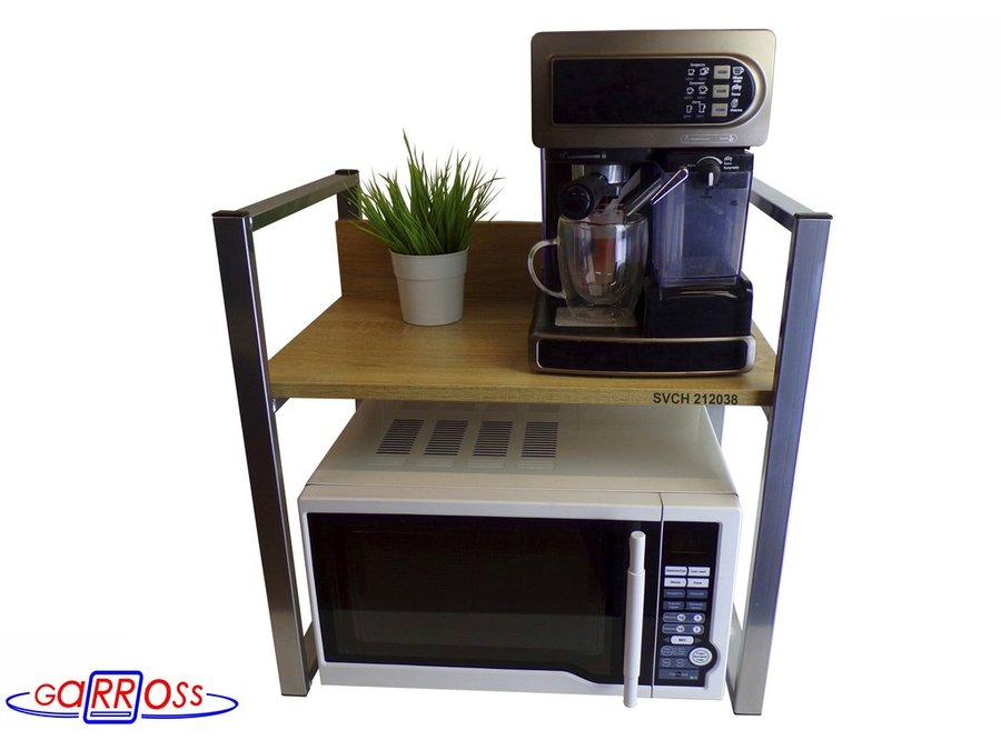 • Универсальная подставка для бытовой техники (микровоновой печи, кофемашины, тостера, электрического чайника и др) позволяет эффективно использовать место на столе.