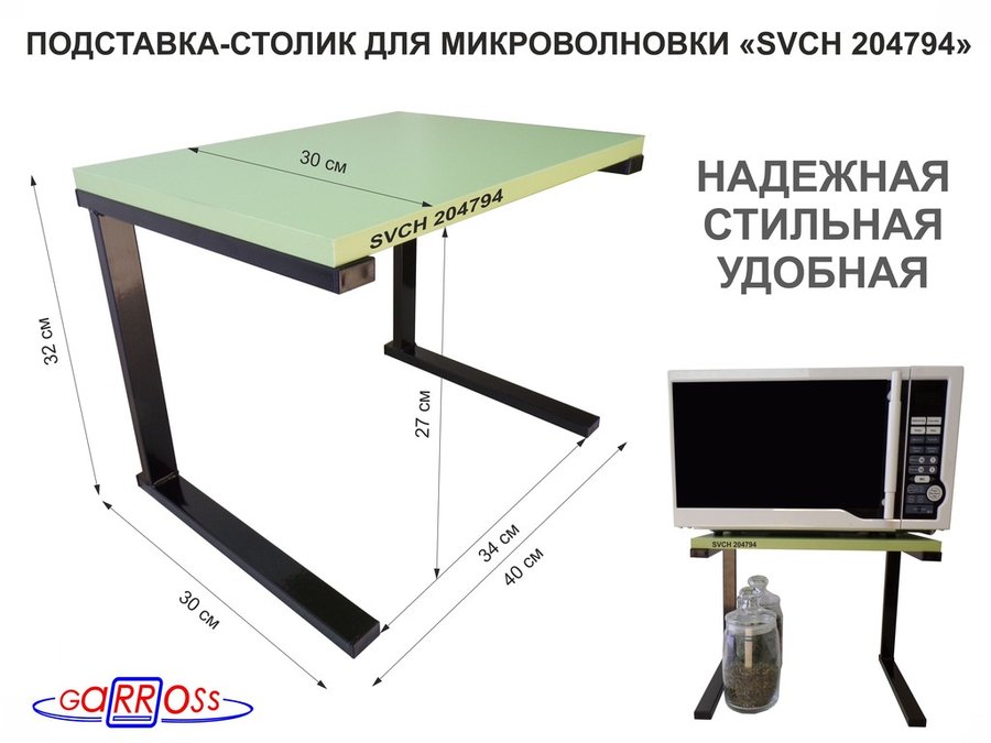 В корзину Купить в 1 клик Подставка-столик для микроволновой печи, высота 32см чёрный "SVCH 204794" полка 30х40см, салатовый