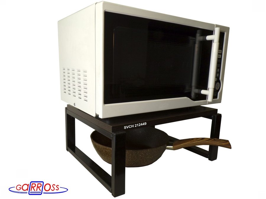 Универсальная подставка для микроволновой печи позволяет эффективно использовать место на столе.