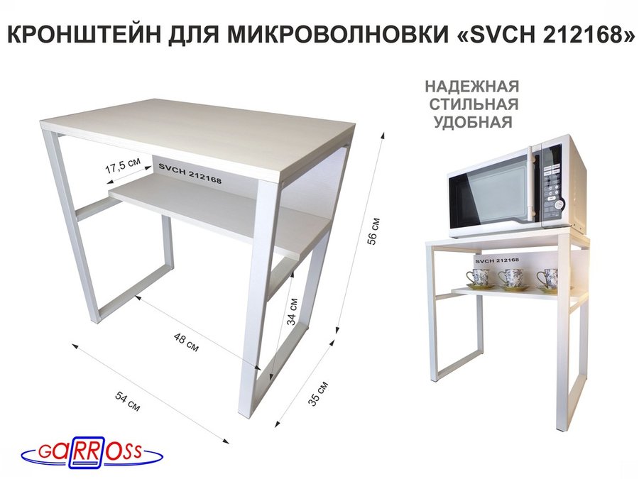 В корзину Купить в 1 клик Подставка на стол для микроволновой печи "SVCH 212212" высота 56см, 54х35см и 54х17см, серый, дуб