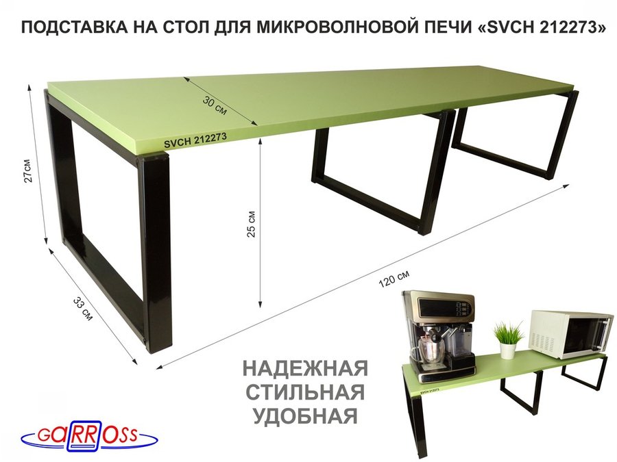 Подставка на стол для микроволновой печи, высота 27см, черный "SVCH 212273" полка 120х30см,салатовый