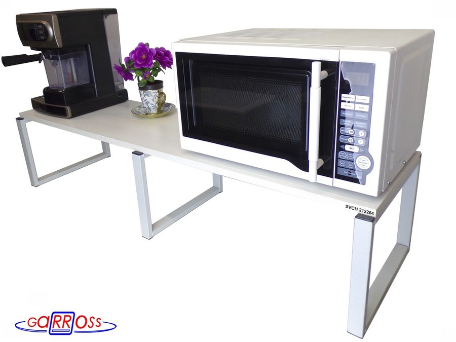 - Универсальная подставка для микровоновой печи позволяет эффективно использовать место на столе.