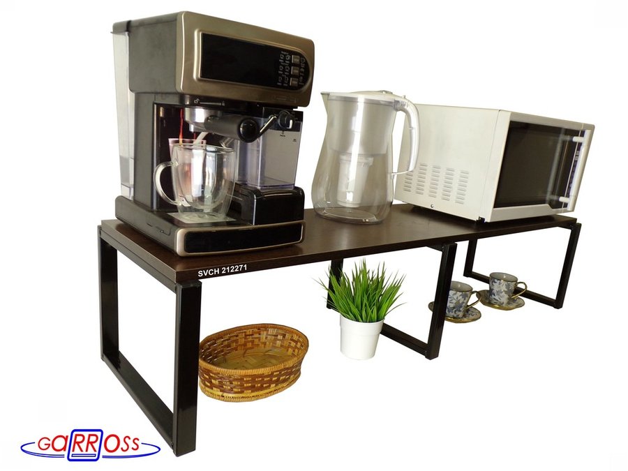 - Универсальная подставка для микровоновой печи позволяет эффективно использовать место на столе.