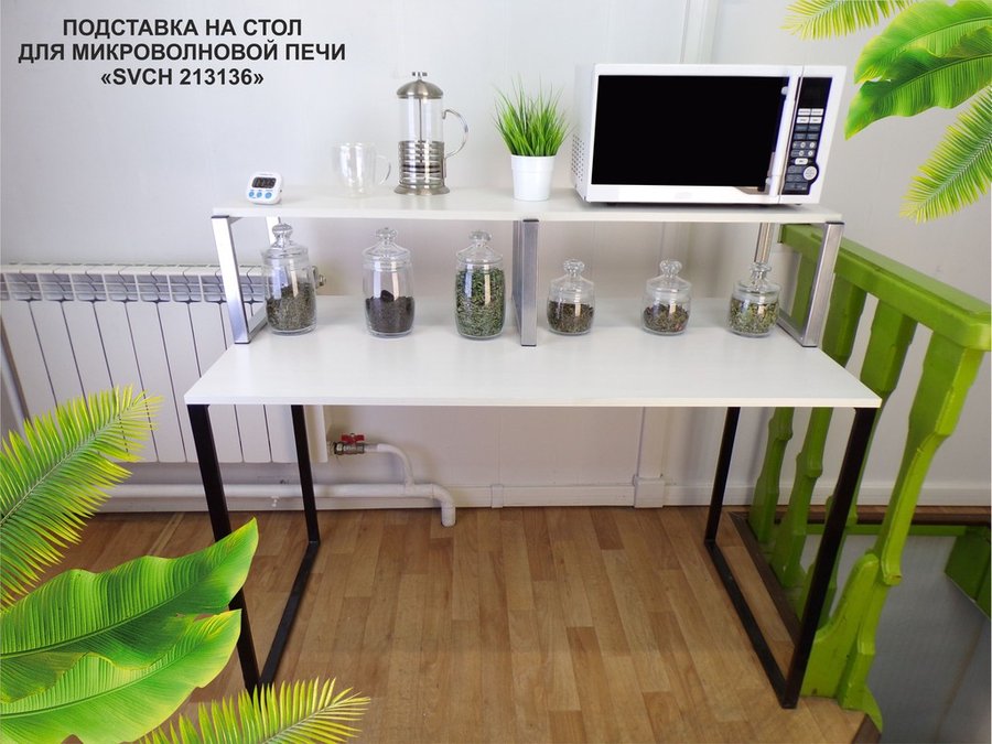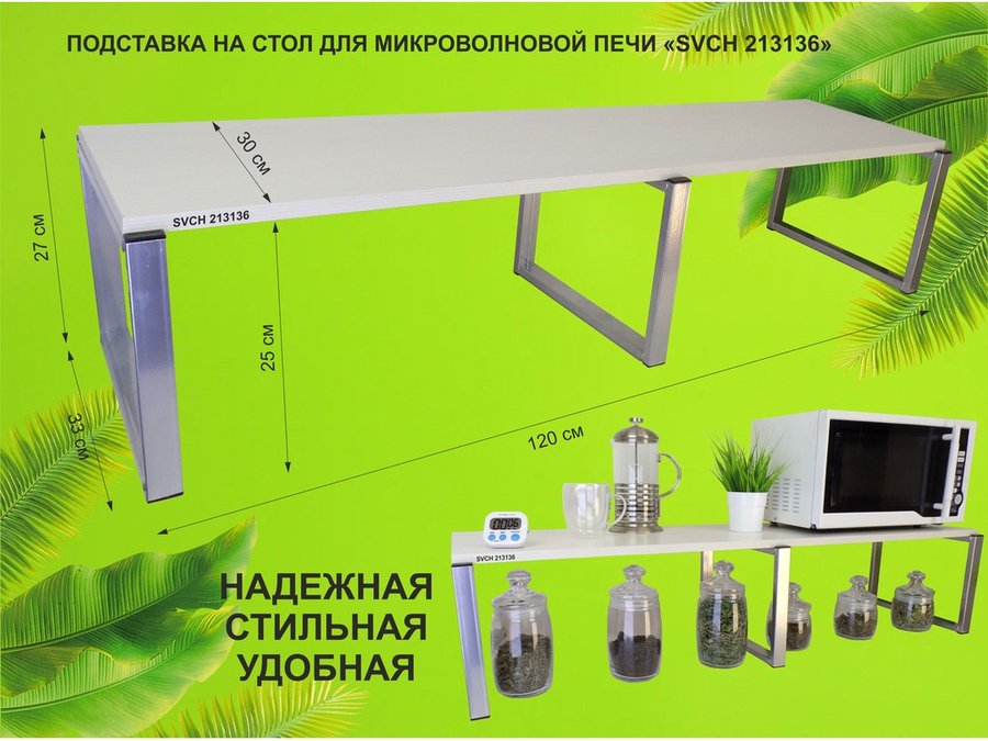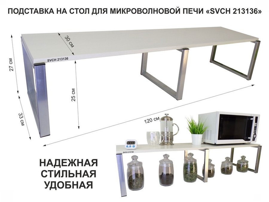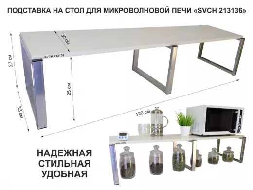 Подставка на стол для микроволновой печи, высота 27см, серебр "SVCH 213136" полка 120х30см, сосна