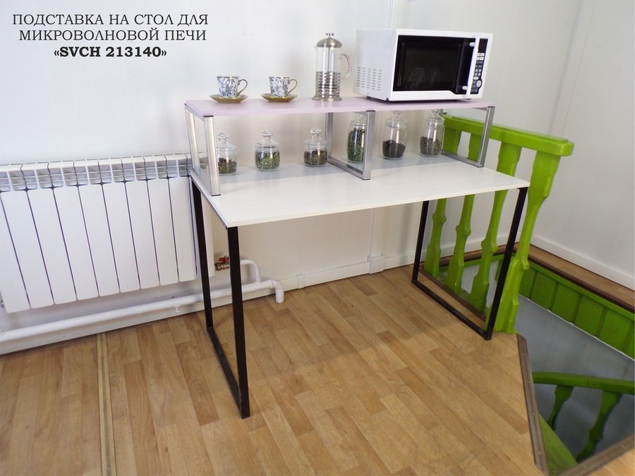 - Универсальная подставка для микровоновой печи позволяет эффективно использовать место на столе.