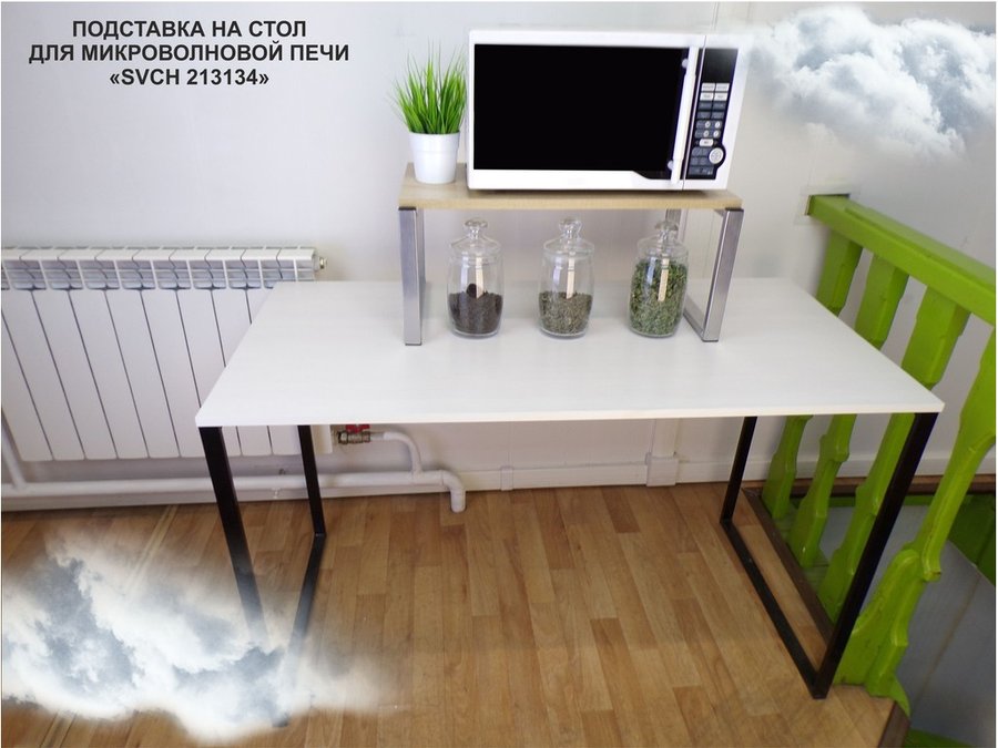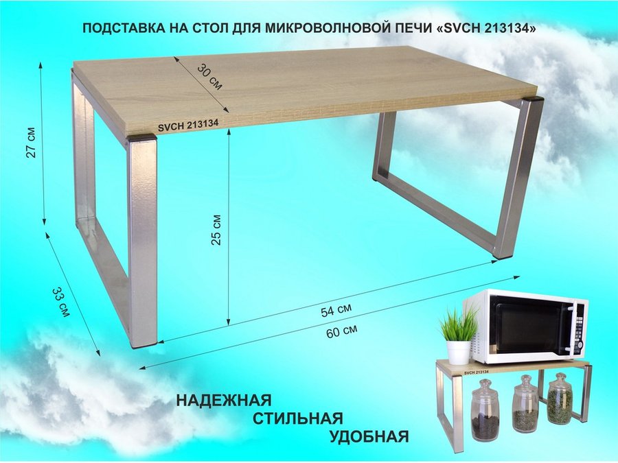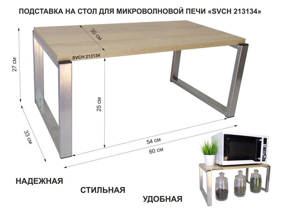 Подставка на стол для микроволновой печи, высота 27см, сереб "SVCH 213134" полка 60х30см, дуб сонома
