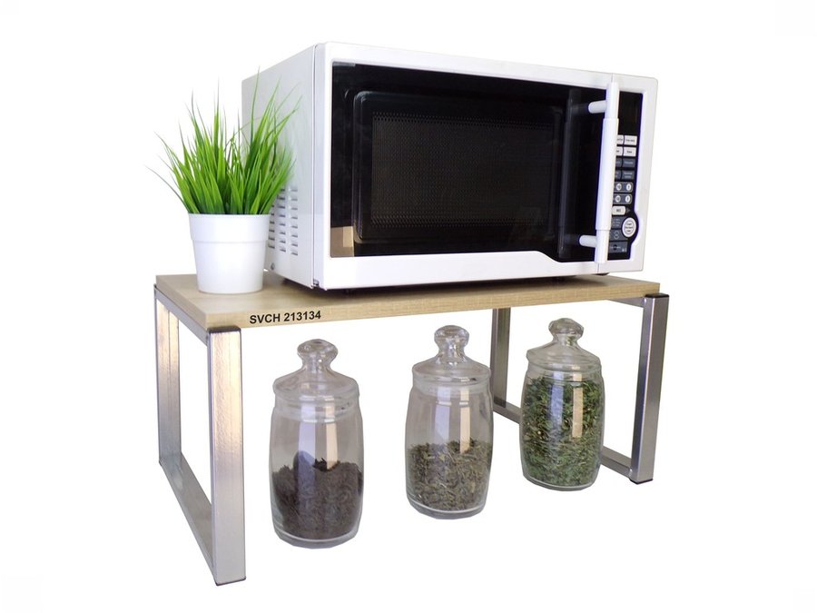 - Универсальная подставка для микроволновой печи позволяет эффективно использовать место на столе.