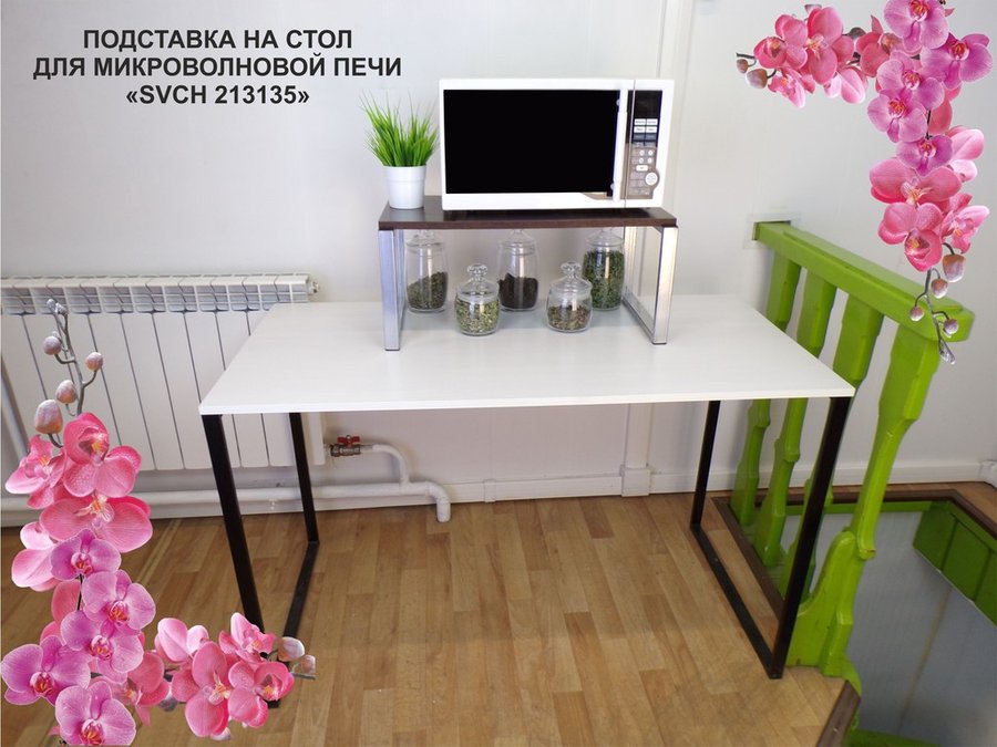 Подставка на стол для микроволновой печи, высота 27см, серебр "SVCH 213135" полка 60х30см, венге