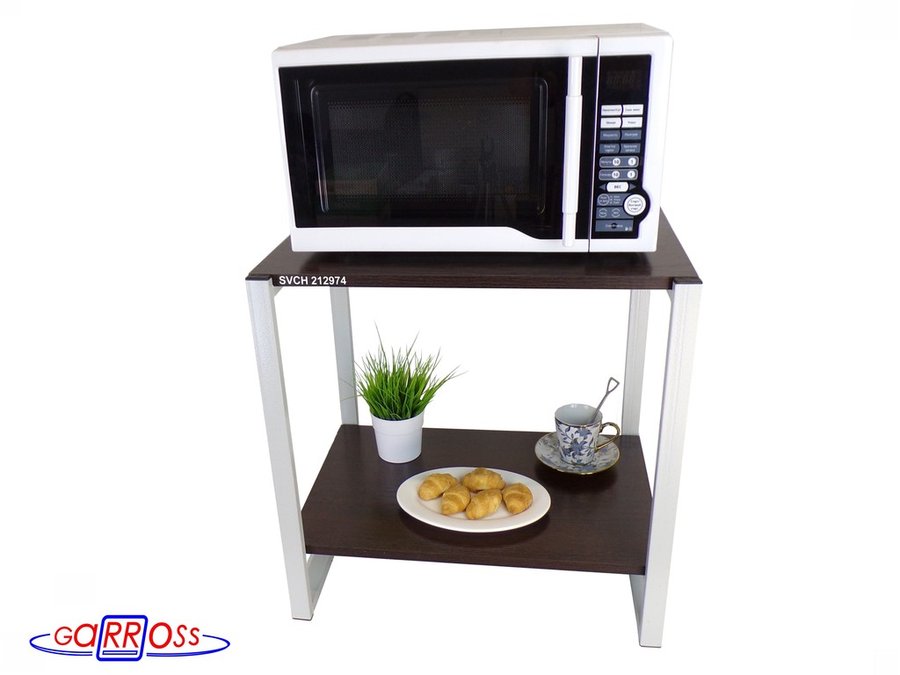 Универсальная подставка для бытовой техники (микроволновой печи, кофемашины, тостера, электрического чайника и др) позволяет эффективно использовать место на столе.