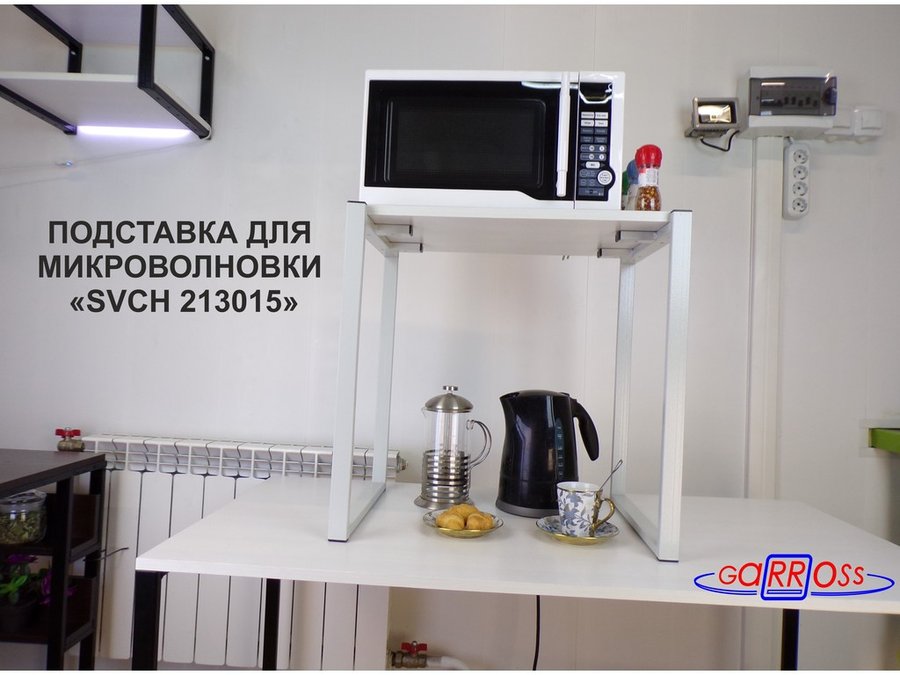 Подставка для микроволновки, серый, высота 55см "SVCH 213015" столешня 54х35 см, сосна выбеленная