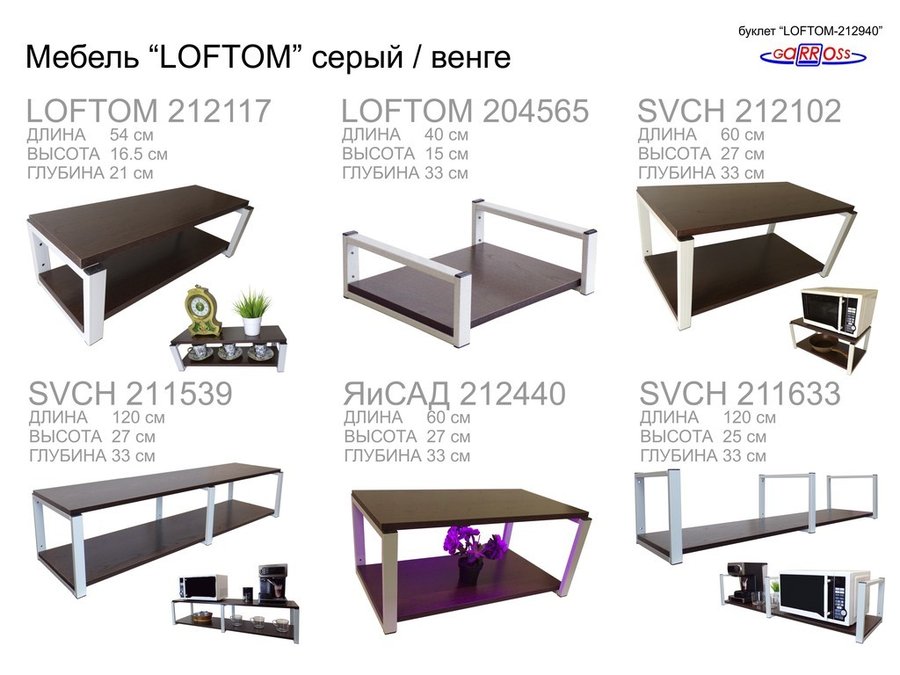 Подставка для микроволновки, серый, высота 55см "SVCH 213017" столешня 54х35 см, венге