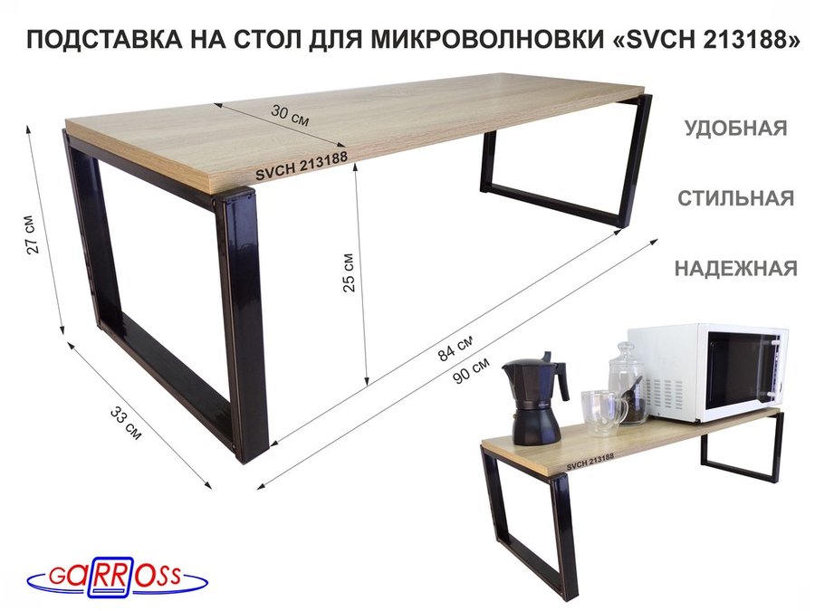 Подставка на стол для микроволновой печи, высота 27см, черный "SVCH 213188" полка 90х30см,дуб сонома