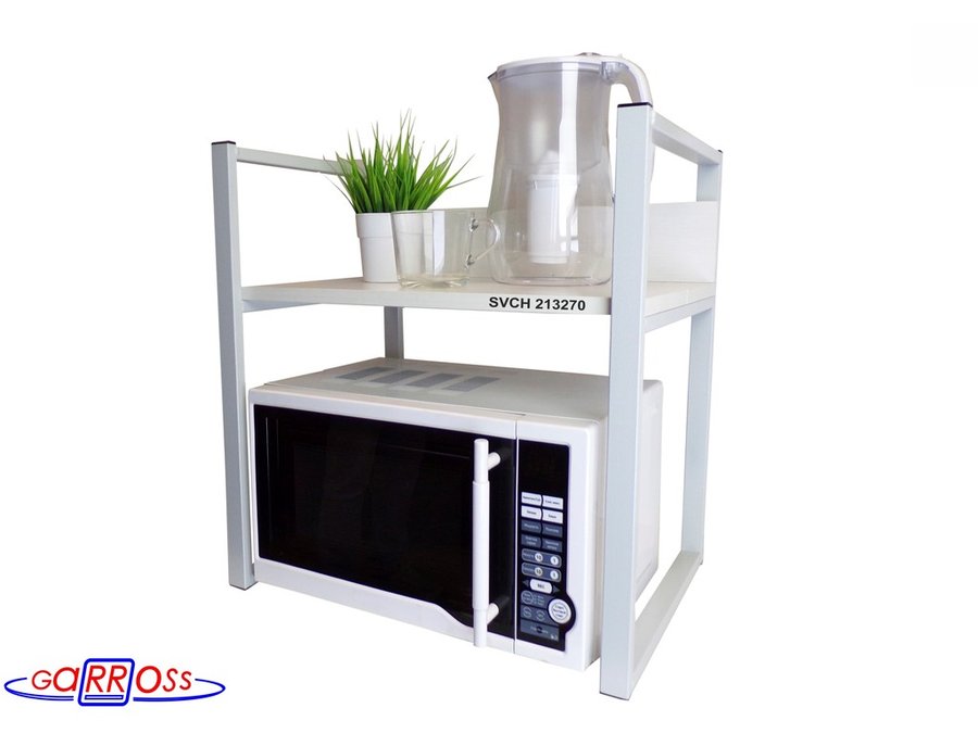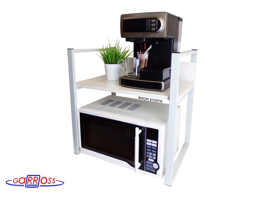 • Универсальная подставка для бытовой техники (микроволновой печи, кофемашины, тостера, электрического чайника и др) позволяет эффективно использовать место на столе.