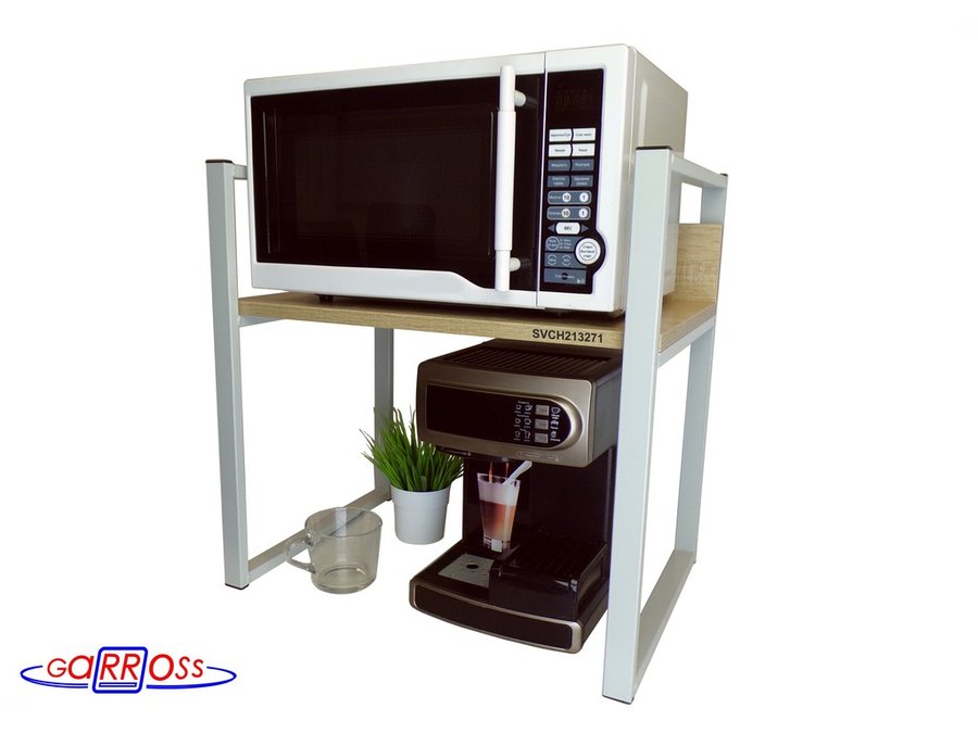 Универсальная подставка для бытовой техники (микроволновой печи, кофемашины, тостера, электрического чайника и др) позволяет эффективно использовать место на столе.