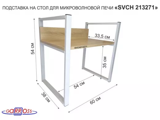 Подставка, полка на стол для микроволновой печи, высота 54см серый "SVCH 213271" полка 35х60см, дуб