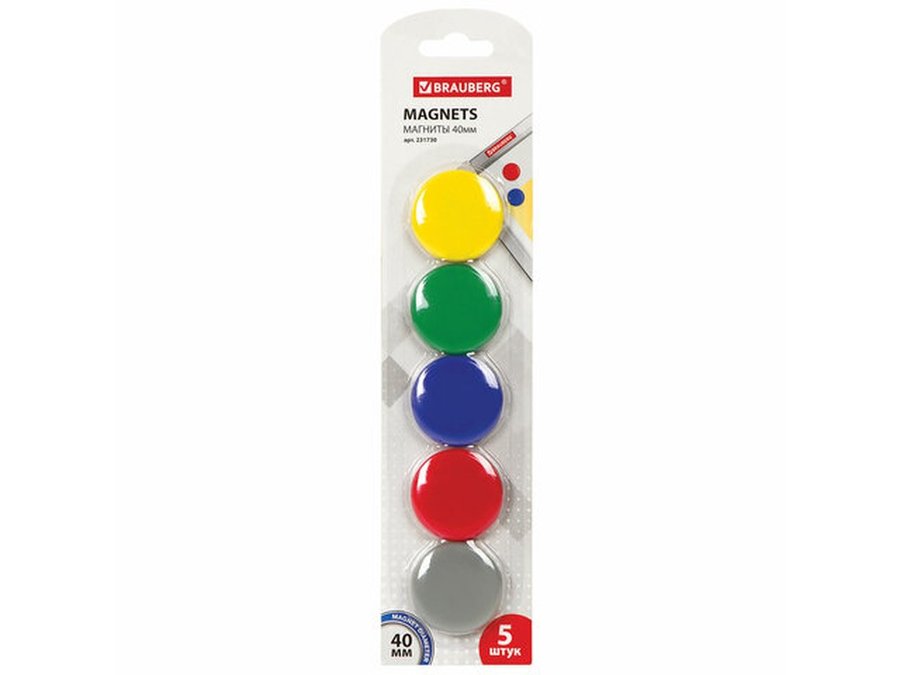 В корзину Купить в 1 клик Магниты БОЛЬШОГО ДИАМЕТРА, 40 мм, КОМПЛЕКТ 5 штук, цвет АССОРТИ, в блистере "BR-76950"