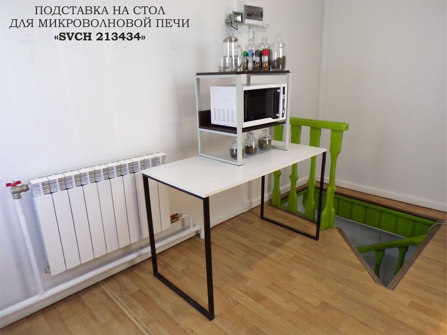 - Универсальная подставка для бытовой техники (микроволновой печи, кофемашины, тостера, электрического чайника и др) позволяет эффективно использовать место на кухне