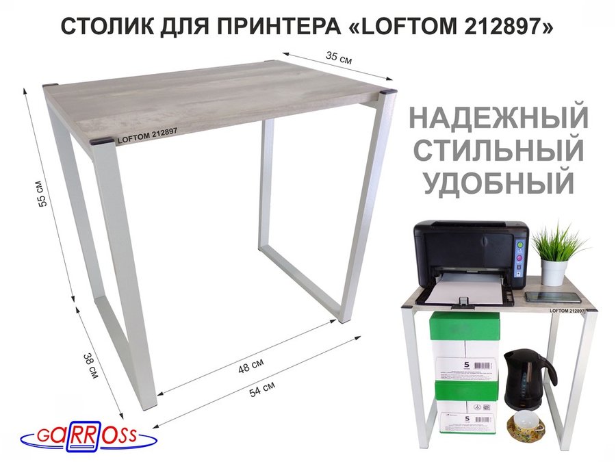 В корзину Купить в 1 клик Столик для принтера, подставка под МФУ, высота 55см, серый "LOFTOM 212897" 54х35 см, лофт