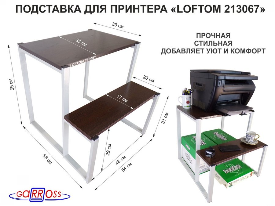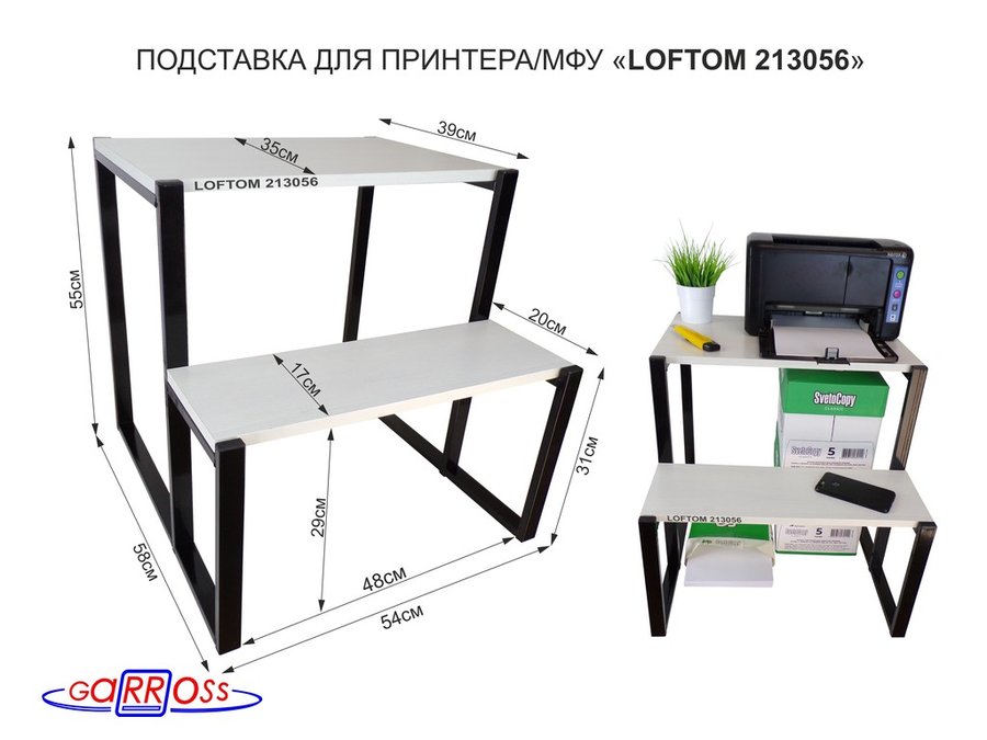 . Подставка под принтер и оргтехнику "LOFTOM" высота 55см и 31см, 54х35см, 2 уровня