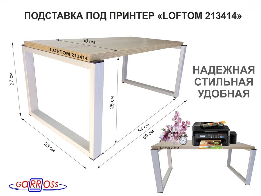 В корзину Купить в 1 клик Подставка под принтер, столик для МФУ, высота 27см, серый "LOFTOM 213414" полка 60х30см, дуб