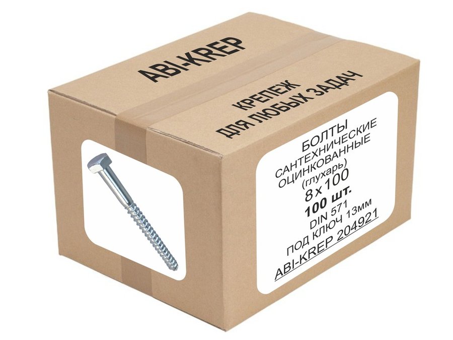 В корзину Купить в 1 клик Болты сантехнические оцинкованные 8х100 DIN 571 (100шт) "ABI-KREP 204921" 3,1кг, Глухарь, 30,96г