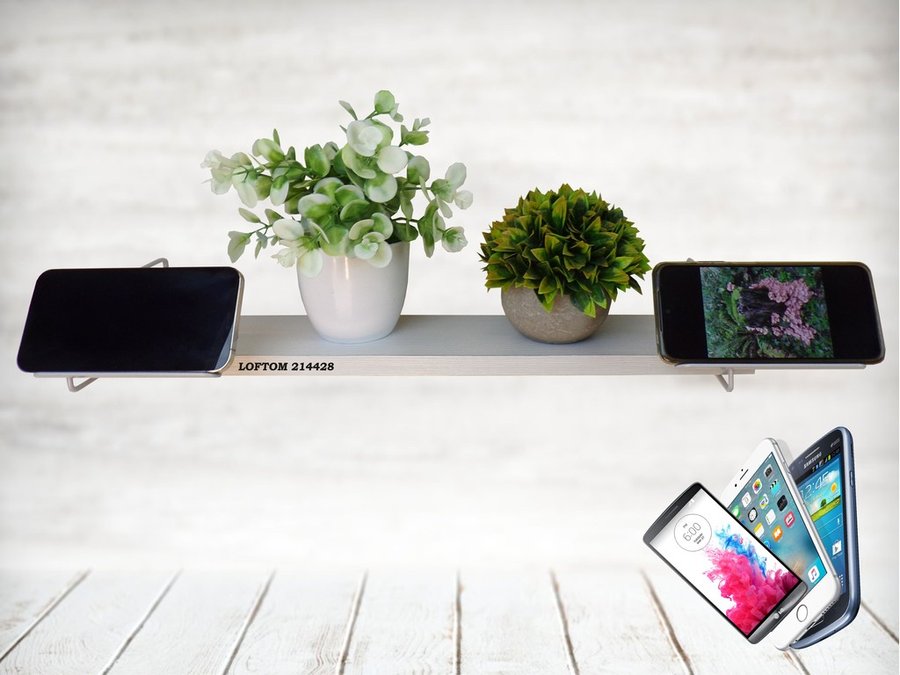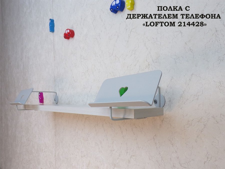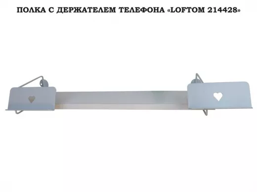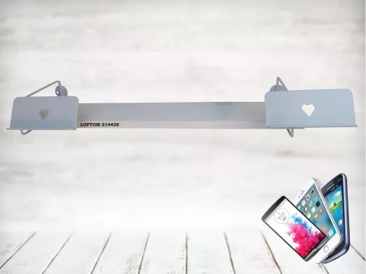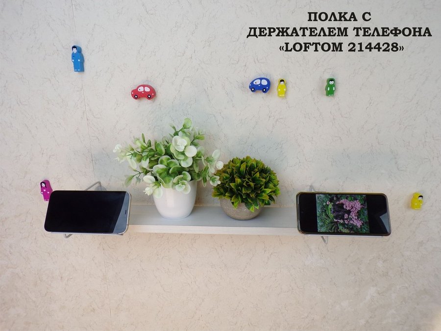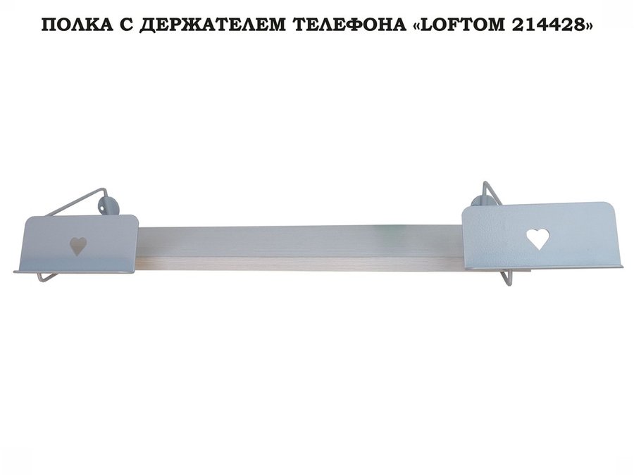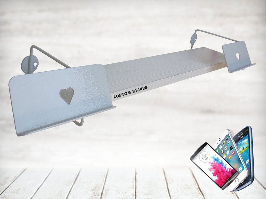 Полка с 2 держателями телефона, серый "LOFTOM 214428" полка 54х10 см, сосна выбеленная