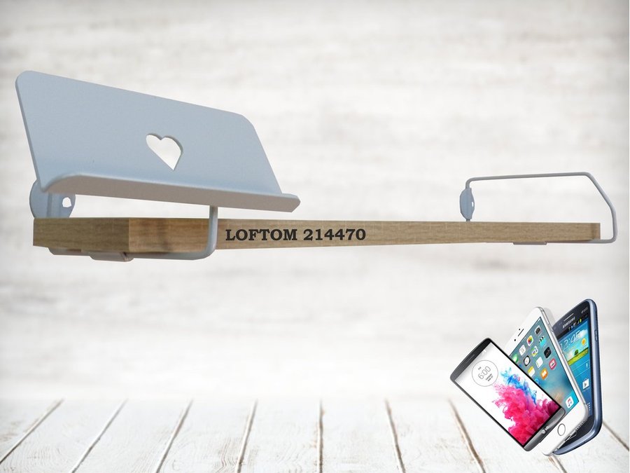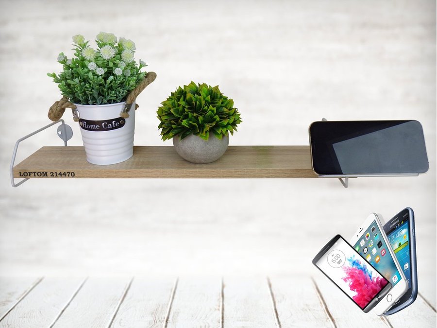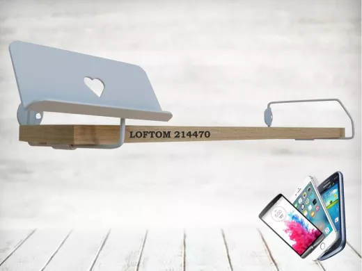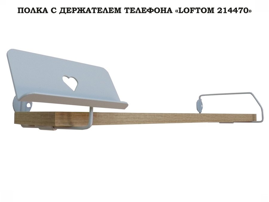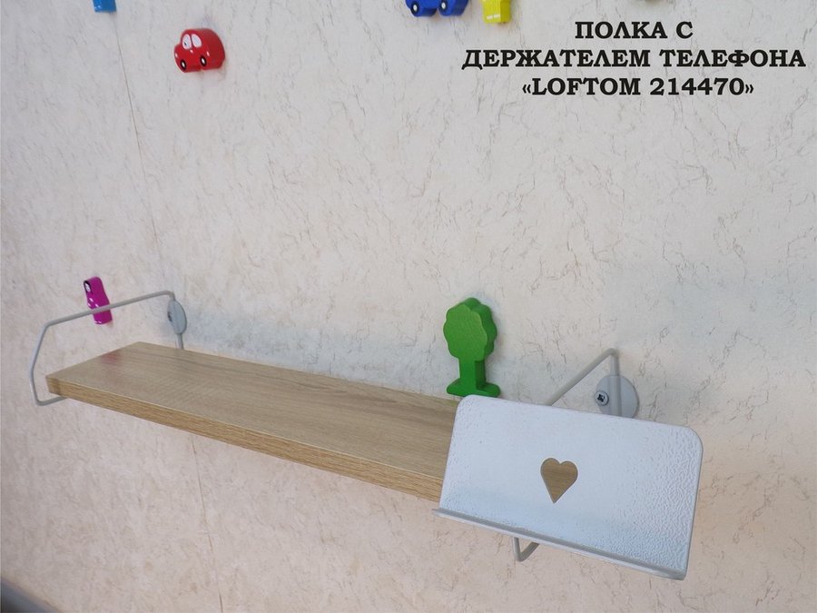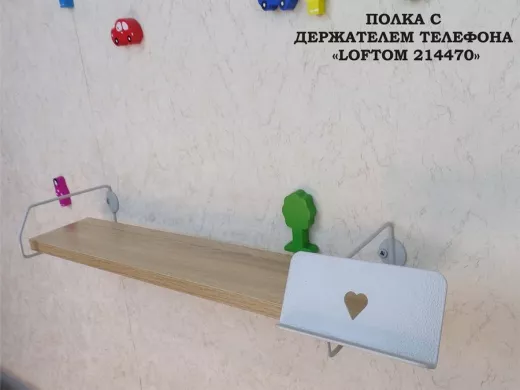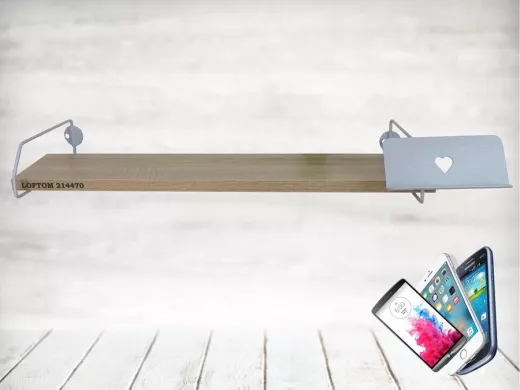 В корзину Купить в 1 клик Полка с держателем телефона, серый "LOFTOM 214470" полка 54х10 см, дуб сонома