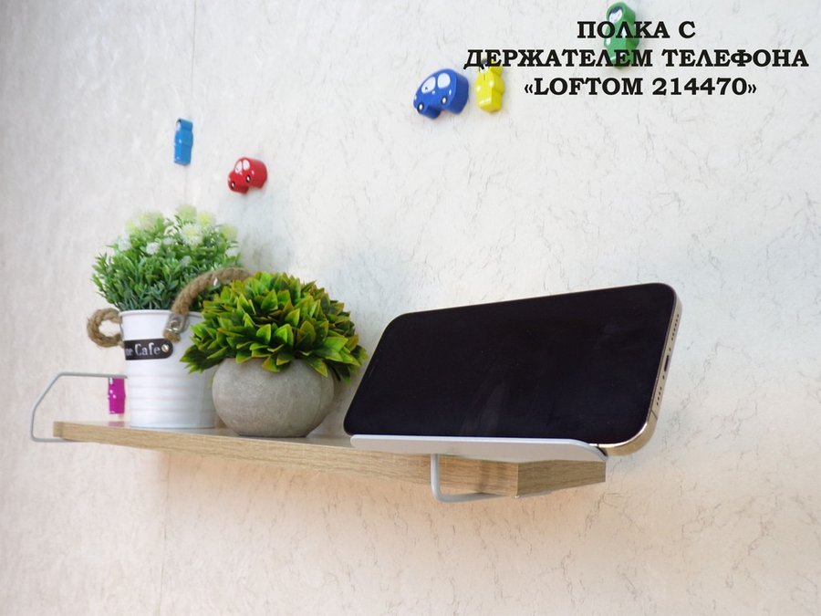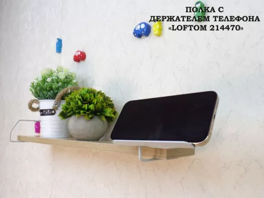 Полка с держателем телефона, серый "LOFTOM 214470" полка 54х10 см, дуб сонома