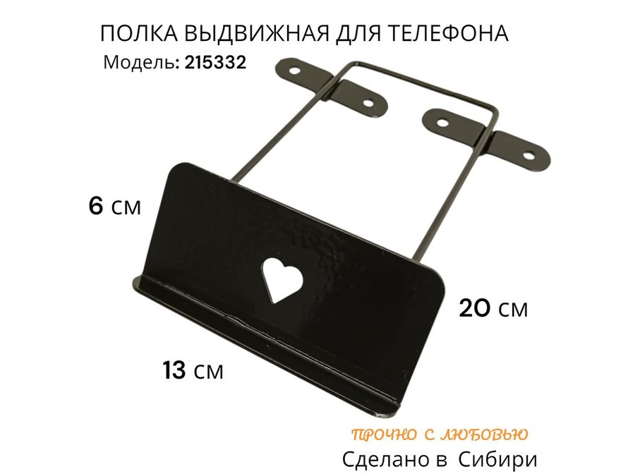 Полка для телефона стальной прочный выдвижной держатель "ABILOVE 215332" черный 6х13,5х20 см