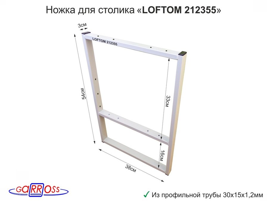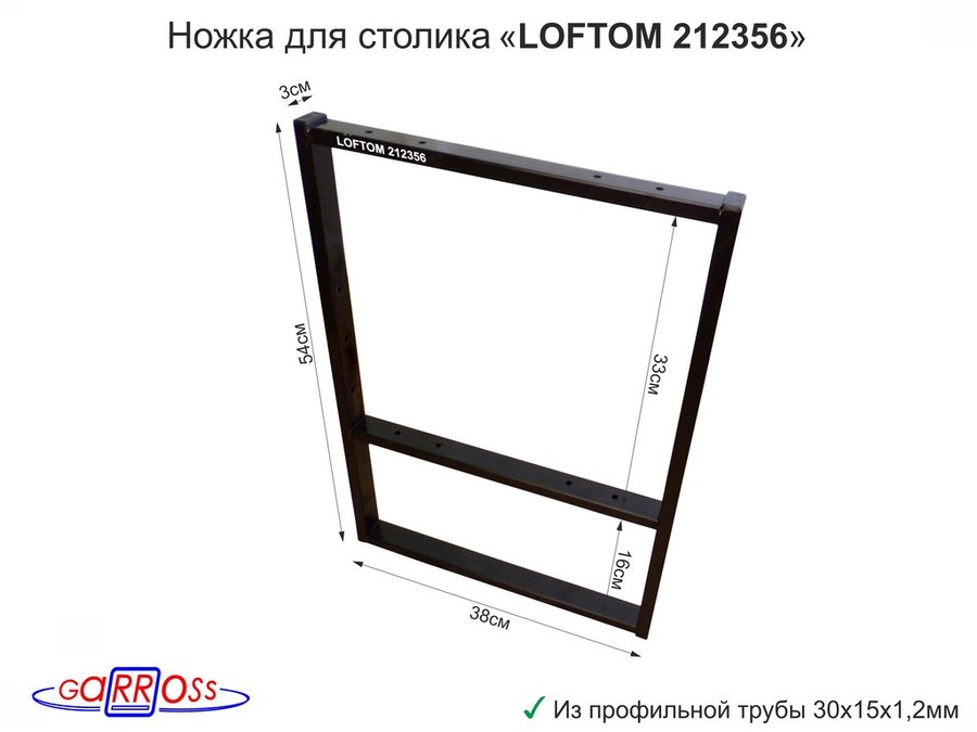 Подстолье, ножка для стола, опора металлическая, высота 54 см, ширина 38,5 см,чёрный "LOFTOM 212356"