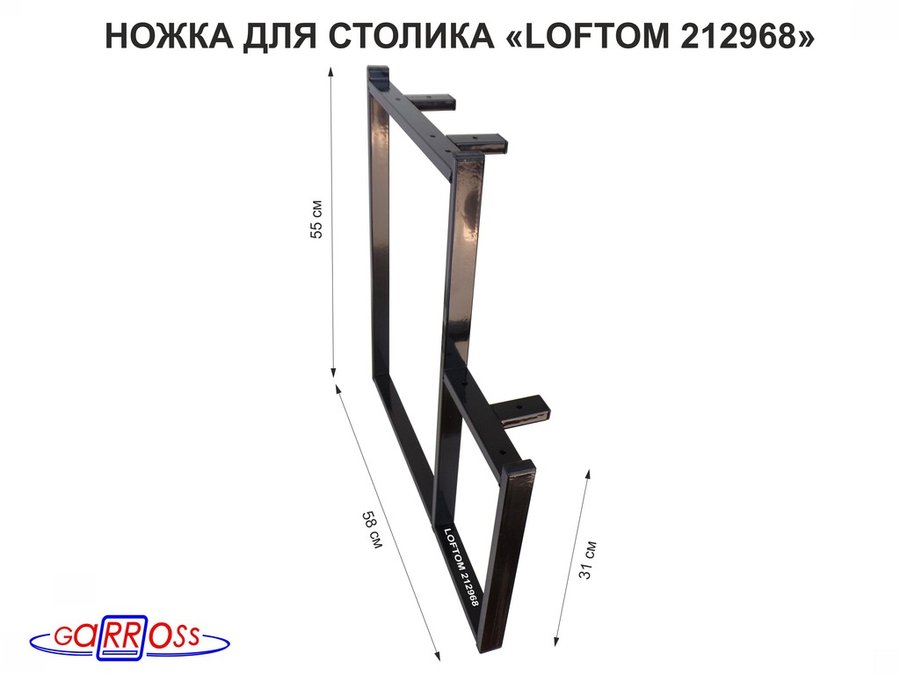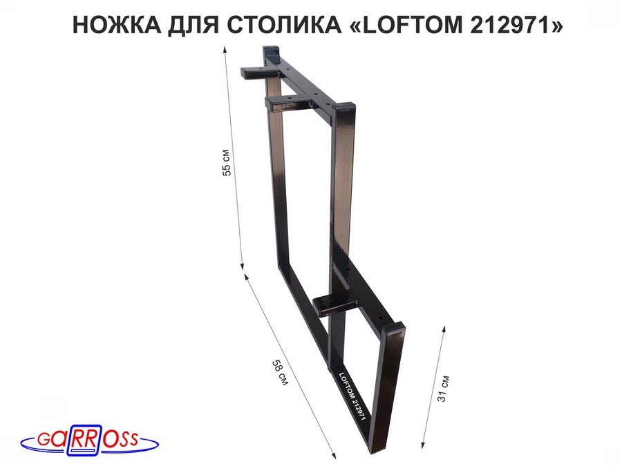 Подстолье, ножка для стола, опора металлическая, высота 55 см, ширина 38,5 см,чёрная "LOFTOM 212254"