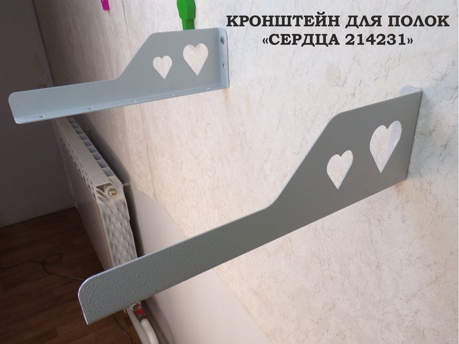 В корзину Купить в 1 клик Кронштейн "СЕРДЦА 214231" для полок, правый 30x8 см , 7 отверстий 7 мм, серый