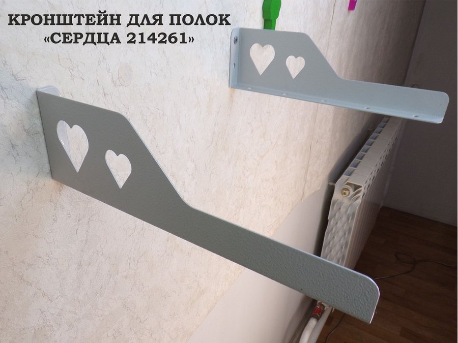 В корзину Купить в 1 клик Кронштейн "СЕРДЦА 214261" для полок, левый 30x8 см , 7 отверстий 7 мм, серый