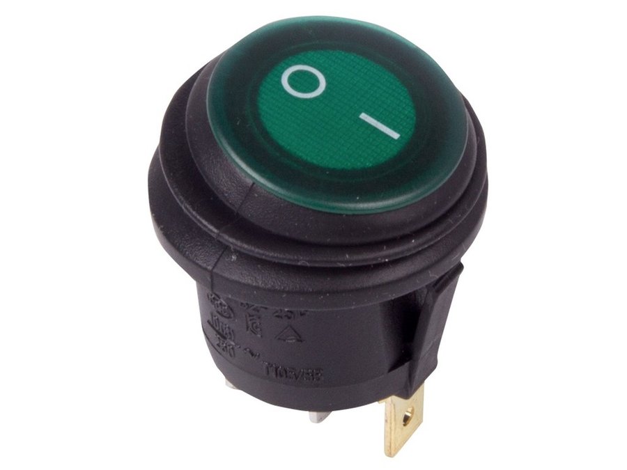 В корзину Купить в 1 клик Выключатель клавишный круглый 250V 6А (3c) ON-OFF зеленый с подсветкой ВЛАГОЗАЩИТА REXANT