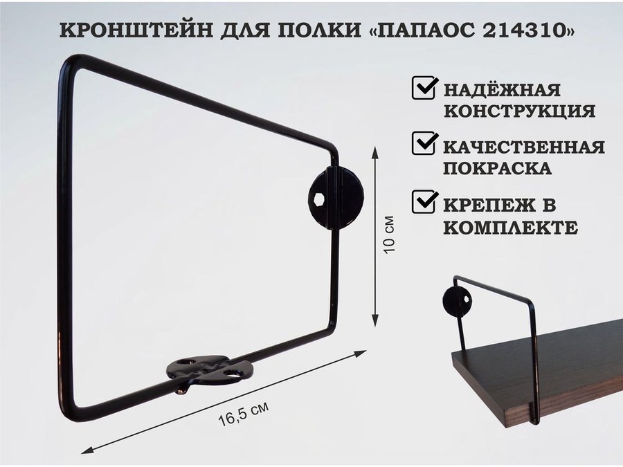 В корзину Купить в 1 клик Кронштейн к стене для полки, высота 10см, вылет 16,5см, черный "ПАПАОС 214310" прямоугольный