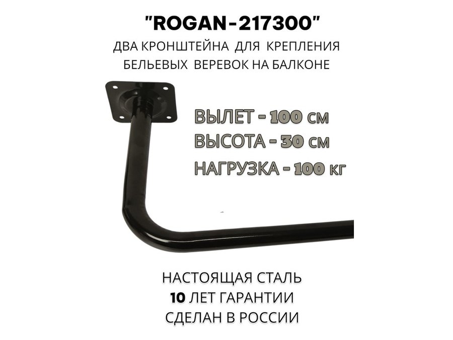 Сушилка для белья под веревки, 2 кронштейна, длина 100см, вылет 30см "ROGAN-217300" черный, 32мм