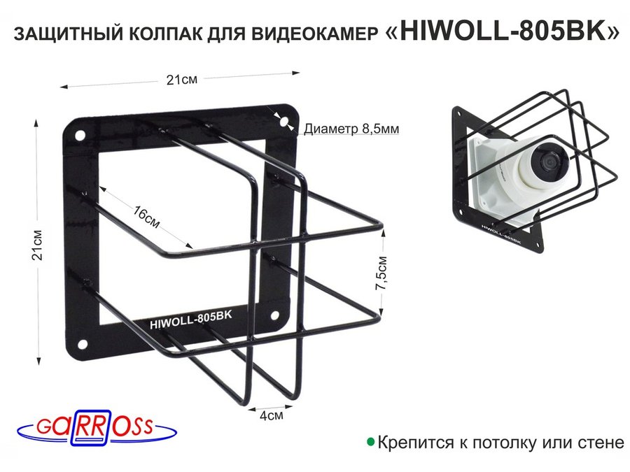 В корзину Купить в 1 клик Колпак защитный "HIWOLL-805BK-162713" ЧЁРНЫЙ с прямоугол. защитой для видеокамер, крепление к стене