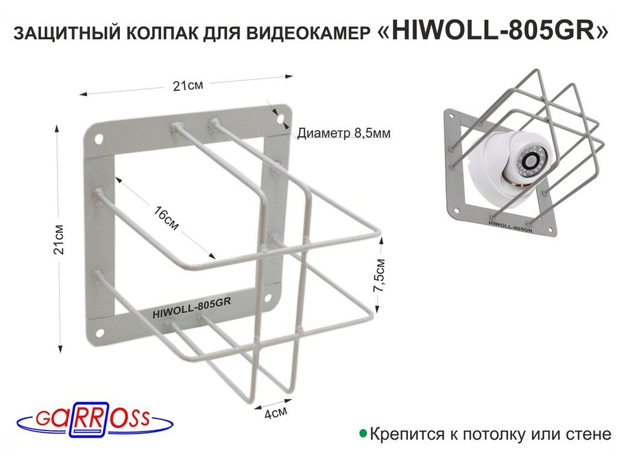 В корзину Купить в 1 клик Колпак защитный "HIWOLL-805GR-194654" СЕРЫЙ с прямоугол. защитой для видеокамер, крепление к стене