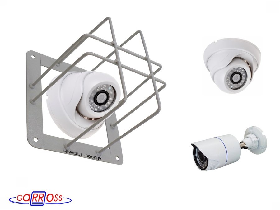Колпак защитный "HIWOLL-805GR-194654" СЕРЫЙ с прямоугол. защитой для видеокамер, крепление к стене