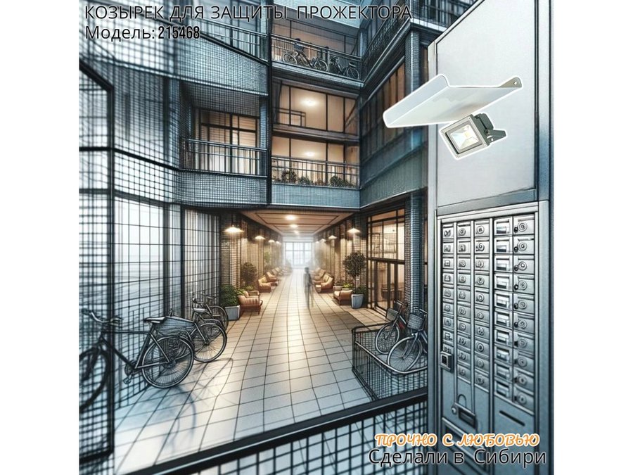 В корзину Купить в 1 клик Козырёк для защиты прожектора от дождя с желобком "POHER-215468" белый 24 х 24 см сталь 2 мм