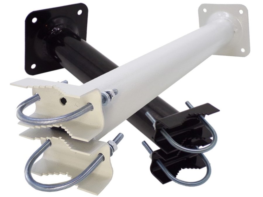 Кронштейн усиленный для мачт "МачтаКреп-112101" серый, два хомута, вылет 0,3м, зажим до 51мм
