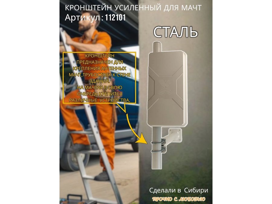 - Кронштейн предназначен для крепления к стене здания с выносом 30 см антенных мачт и трубостоек.