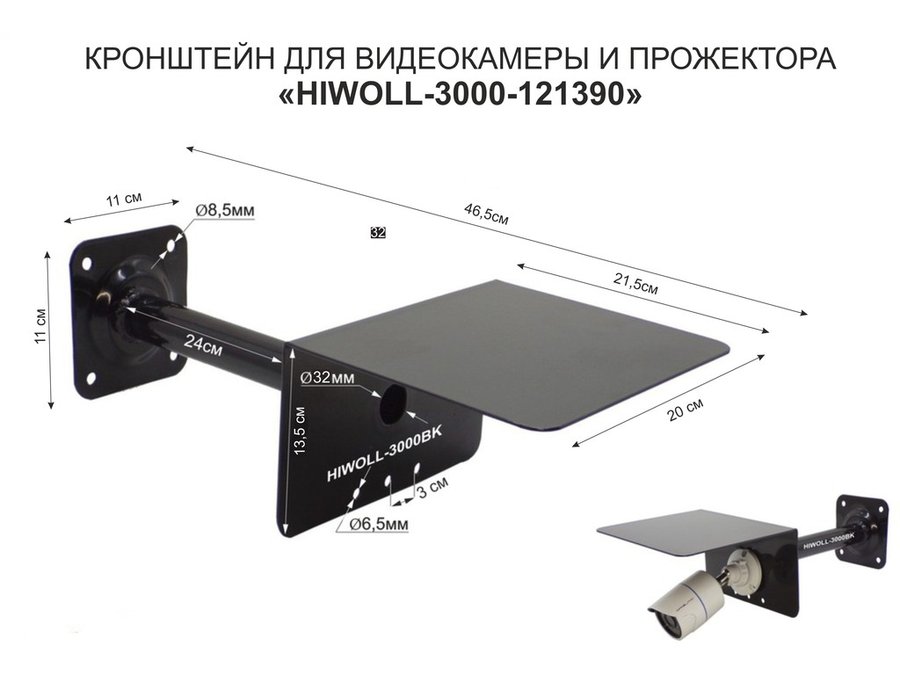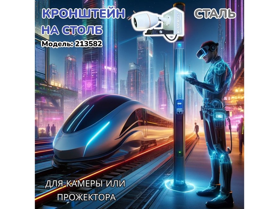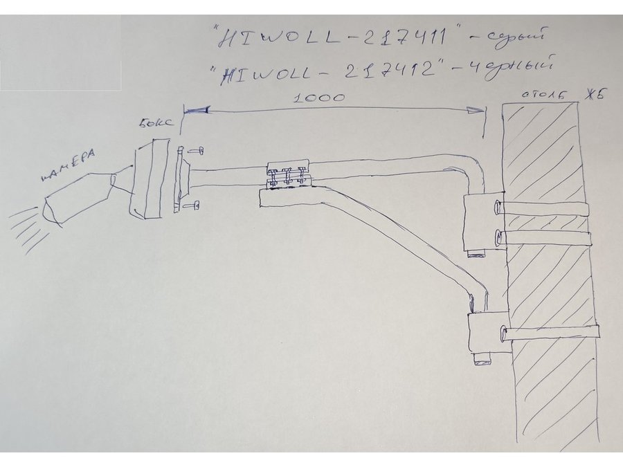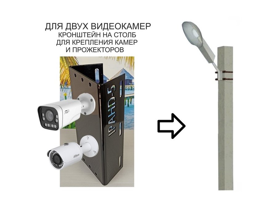 Кронштейн на столб для крепления гермобокса с видеокамерой,вылет 100 см "HIWOLL-217397" черн., сталь